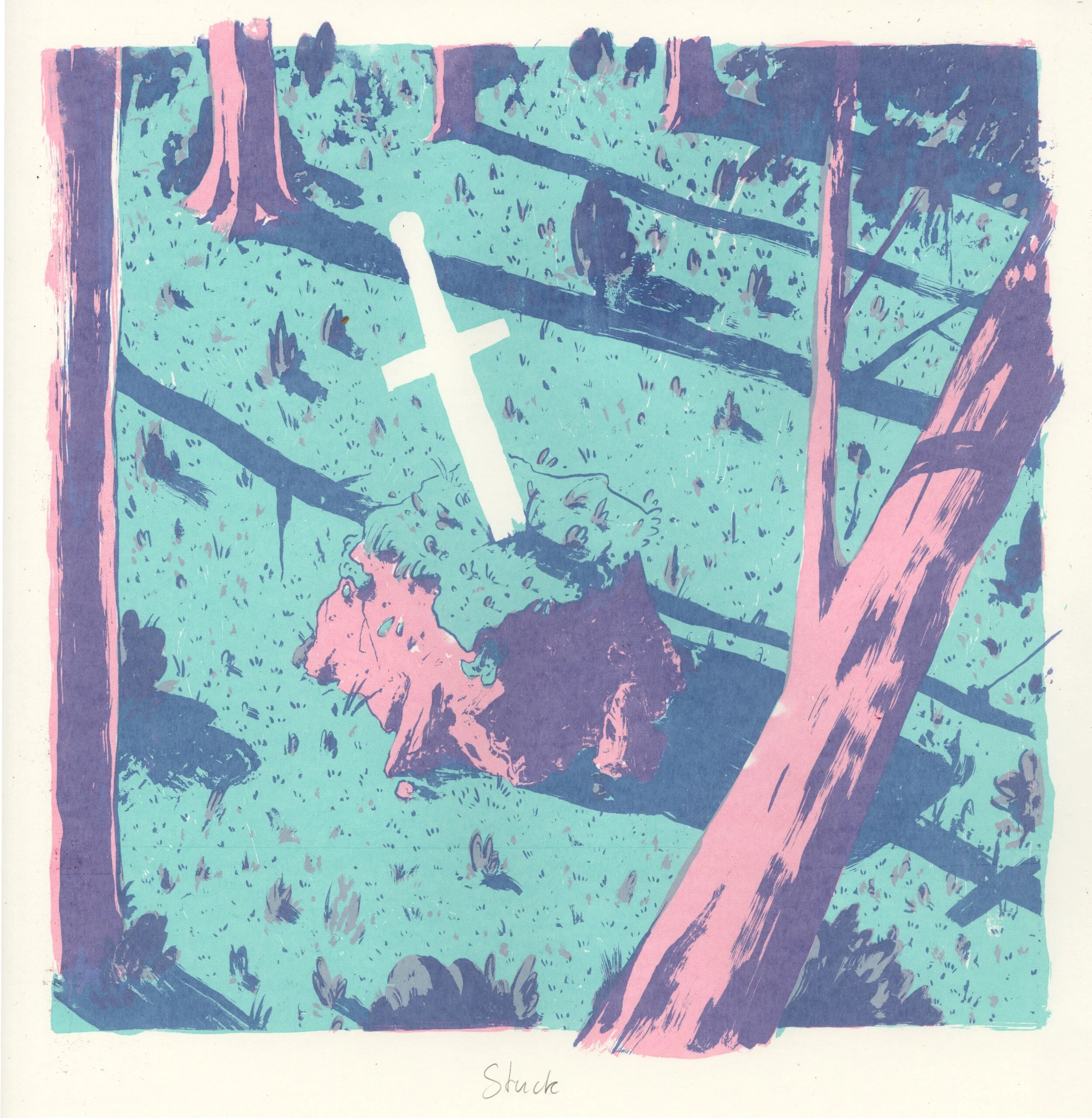 A series of Arthurian themed screen prints I created for a brief inspired by The Holy Grail. I used only traditional methods to create the set and worked with isometric drawing paper, black gouache and wet media acetate.